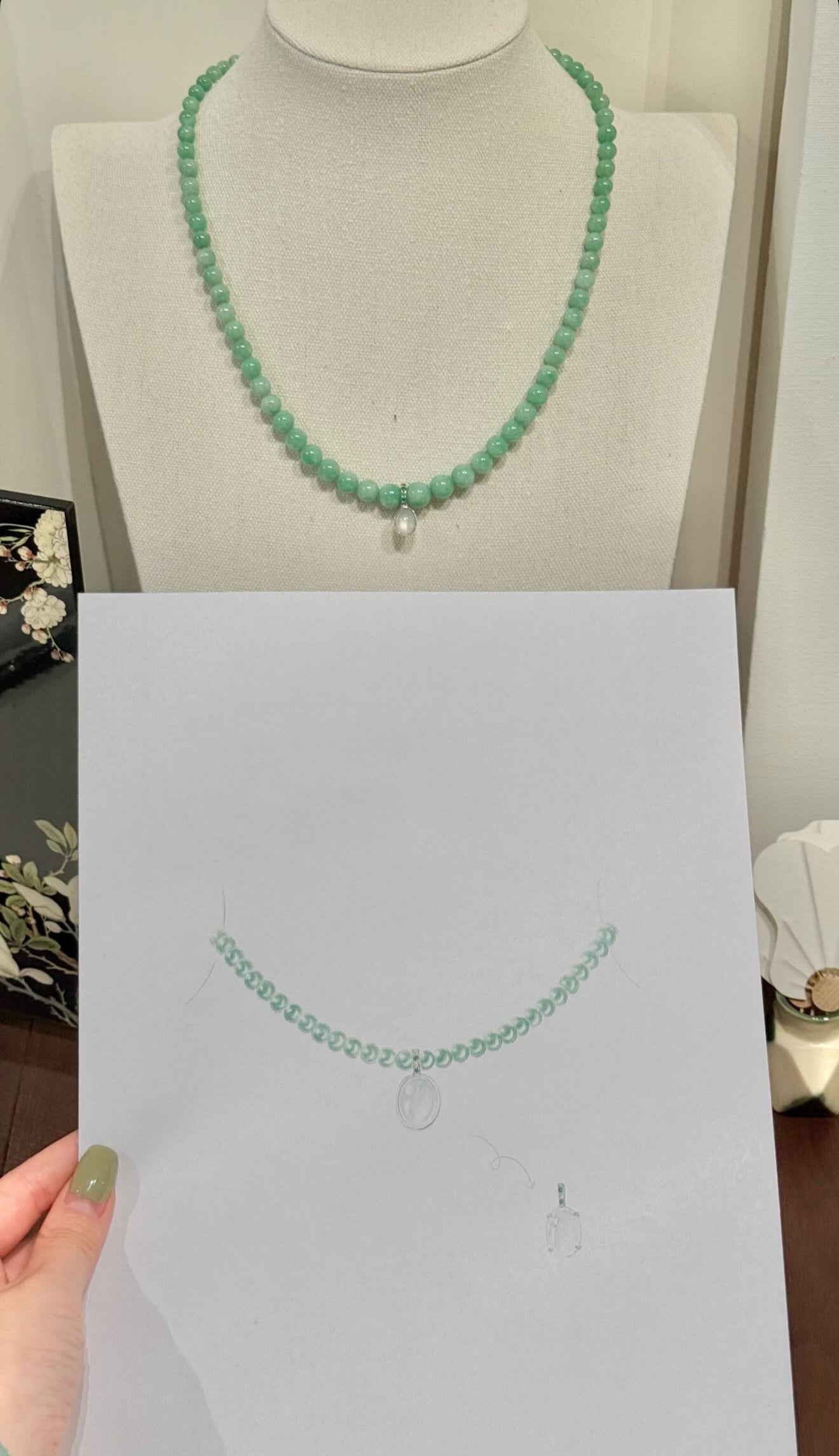 Choose from a curated selection of jade, pearls, and gemstones, paired with the metals and finishes that hold meaning for you. Every element is tailored to your taste.